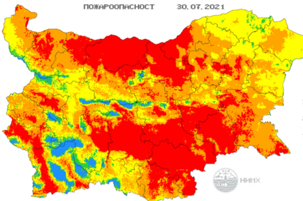 За висока степен на опасност от пожари в горещините предупреждават от Националния институт по метеорология и хидрология и от пожарната. За днес цялата хасковска област е в оранжево, а утре и вдругиден – в червено.