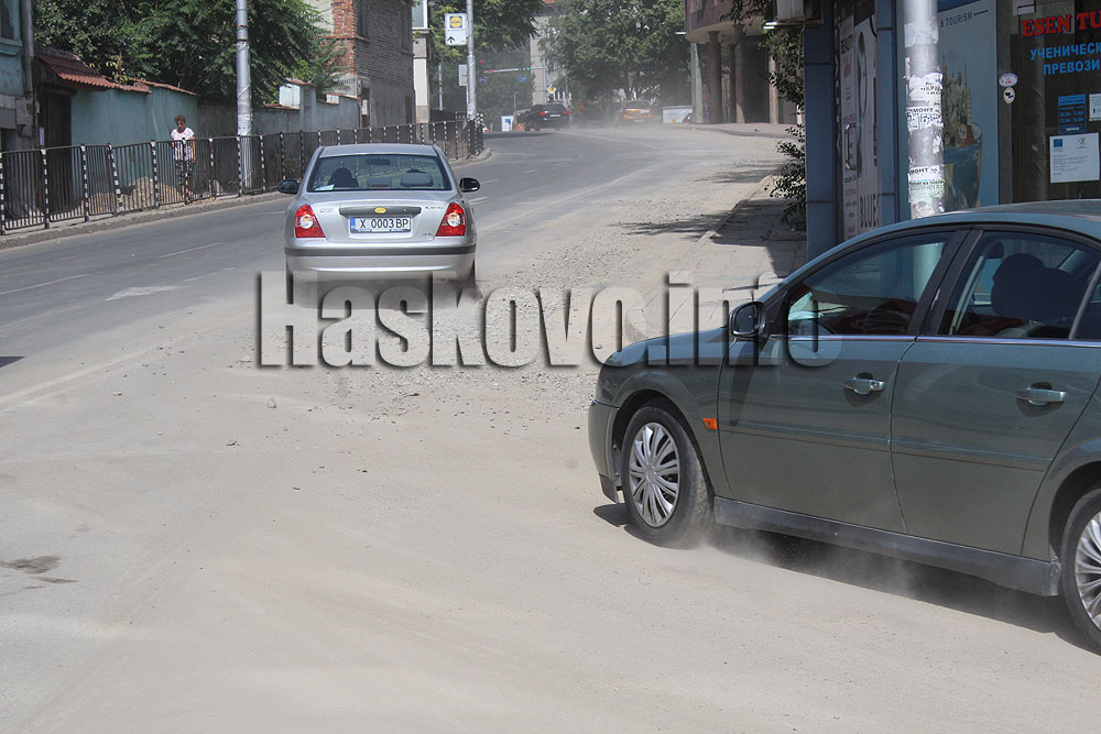 Ще се работи по булевард „България“ от кръстовището с улица „Св. Климент Охридски“ до кръстовището на Зеленчуковия пазар и по булевард „Съединение“ до кръстовището с булевард „Раковски“. Вчера беше отворено и второто платно за движение по „Съединение“ и във въздуха се вдигна прах от преминаващите коли.