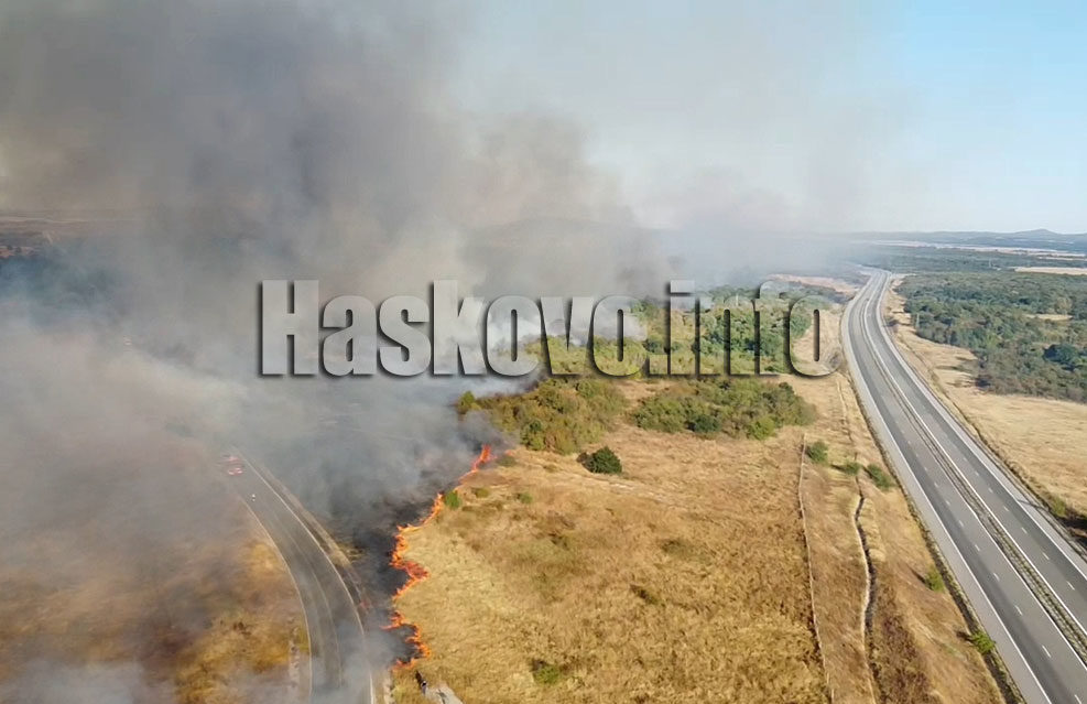 Пожар избухна след обяд до автомагистрала „Марица“ между Свиленград и Капитан Андреево в района на село Генералово.