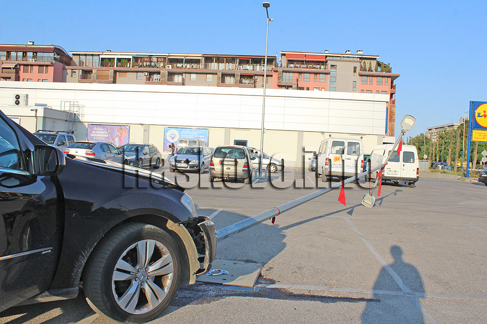 Мерцедес събори стълб на паркинга на хипермаркет в Хасково
