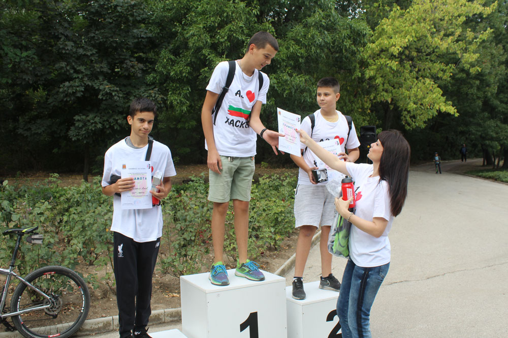 Заместник-кметът Мария Вълчева награди най-добрите колоездачи, а за всички участници в състезанието имаше подаръци и сувенири от община Хасково.