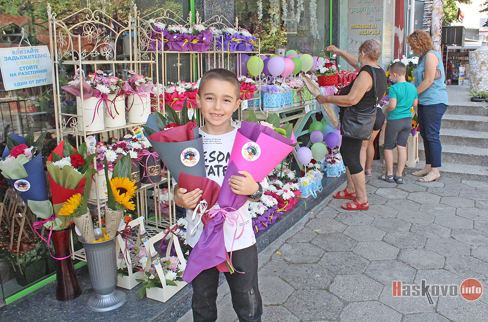 Деца и родители вече купуват цветя за първия учебен ден в Хасково.