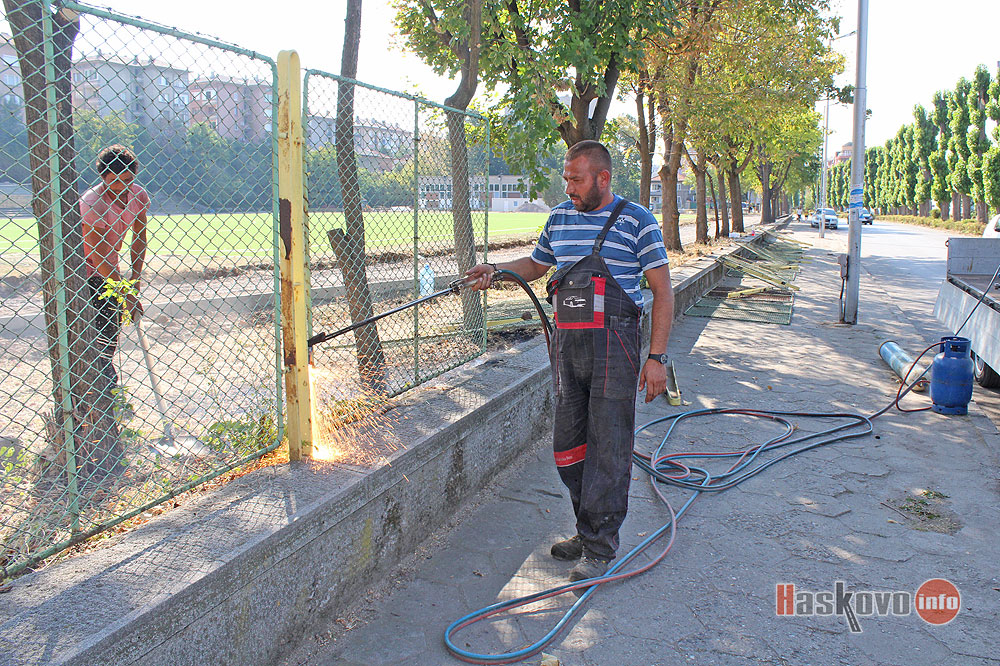 Старата ограда на хасковския стадион „Младост“ по булевард „България“ беше премахната. Предстои изграждането на нова.