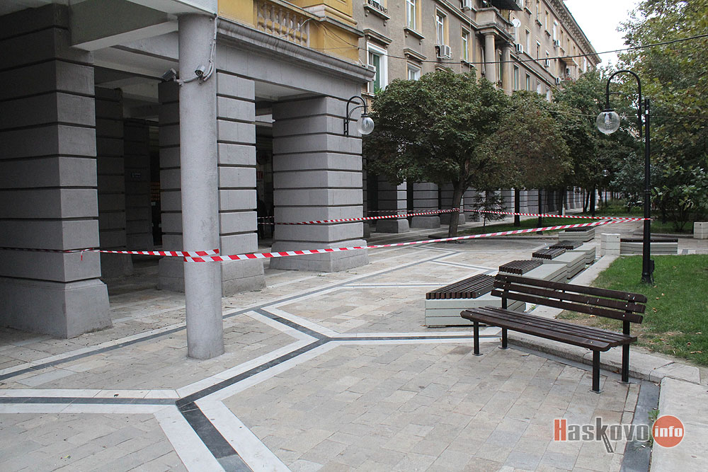 Част от пешеходната зона в центъра на Димитровград е заградена с ленти заради падаща мазилка.