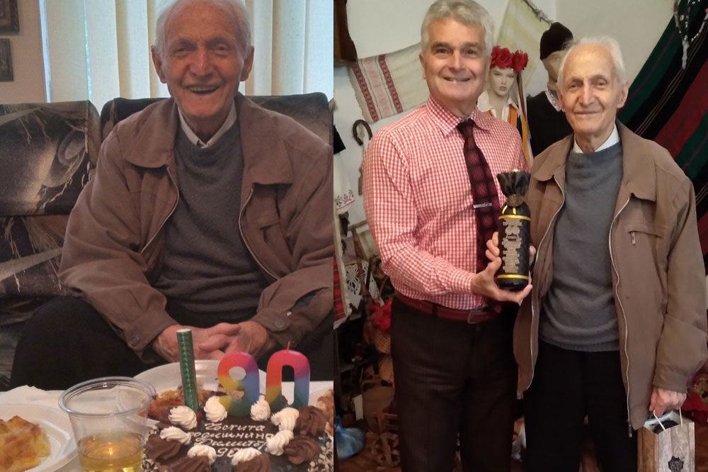 Председателят на Тракийското дружество Кирил Сарджев връчи на рожденика почетна грамота и подаръци с пожеланието на всички тракйци за здраве и все така активно участие в живота на тракийската общност.