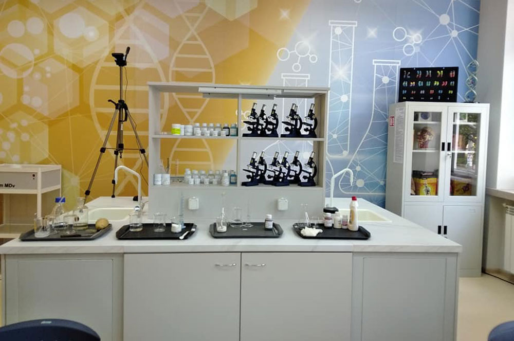 Лабораторията разполага с професионално оборудване, удобни и практични работни места, лабораторен остров за експерименти и обучение. Кабинетът е оборудван с демонстрационна камина, електронна дъска, мултимедия.