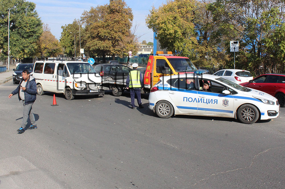 Леката кола се е движила направо по булевард „Васил Левски“, когато е била засечена от микробуса, натоварен със стока, излизащ от булевард „България“. При произшествието няма сериозно пострадали. Водачите не са употребили алкохол.