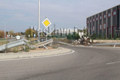 Повечето от катастрофите, които стават на кръговото са в обратната посока, където мантинелата е също смачкана.
