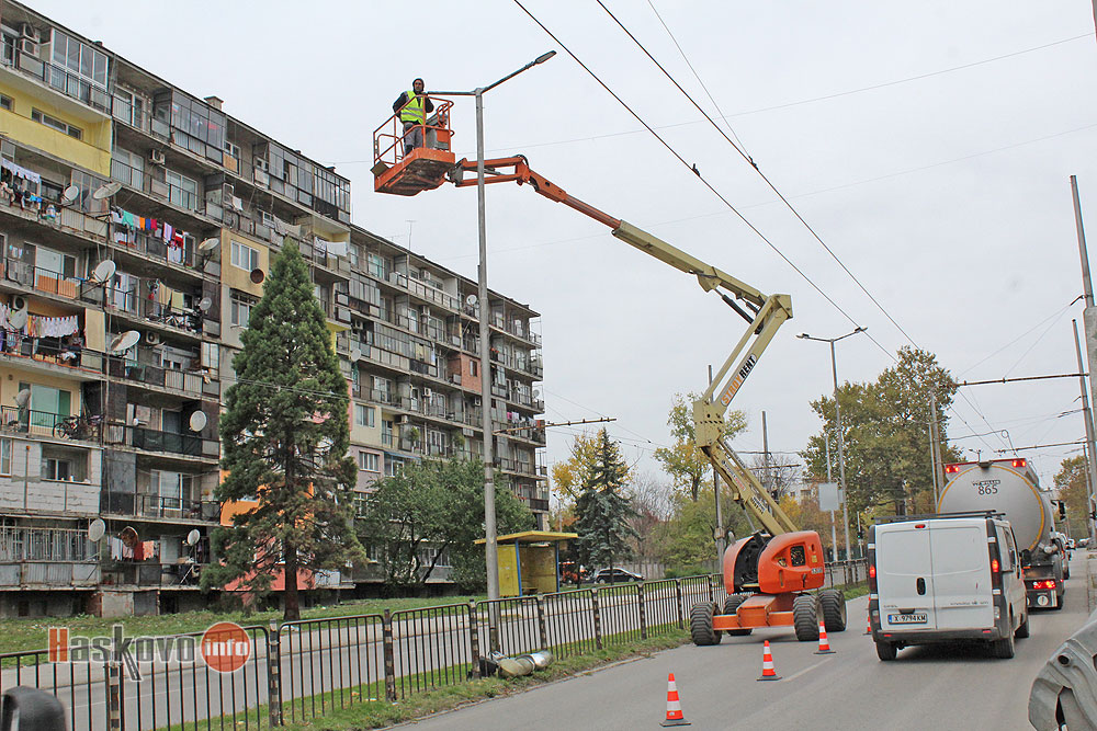 Продължава подмяната на осветлението в трафика по хасковския булевард „Васил Левски“. Работата наложи спирането на тролеите, като по линиите се движат автобуси.
