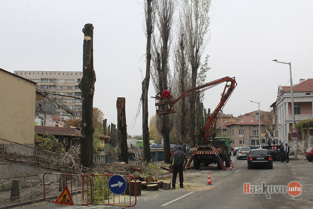 Санитарна сеч се извършва по булевард „България“ след Младежкия център в Хасково. Булевардът не е затворен, като движението се осъществява в едната лента.