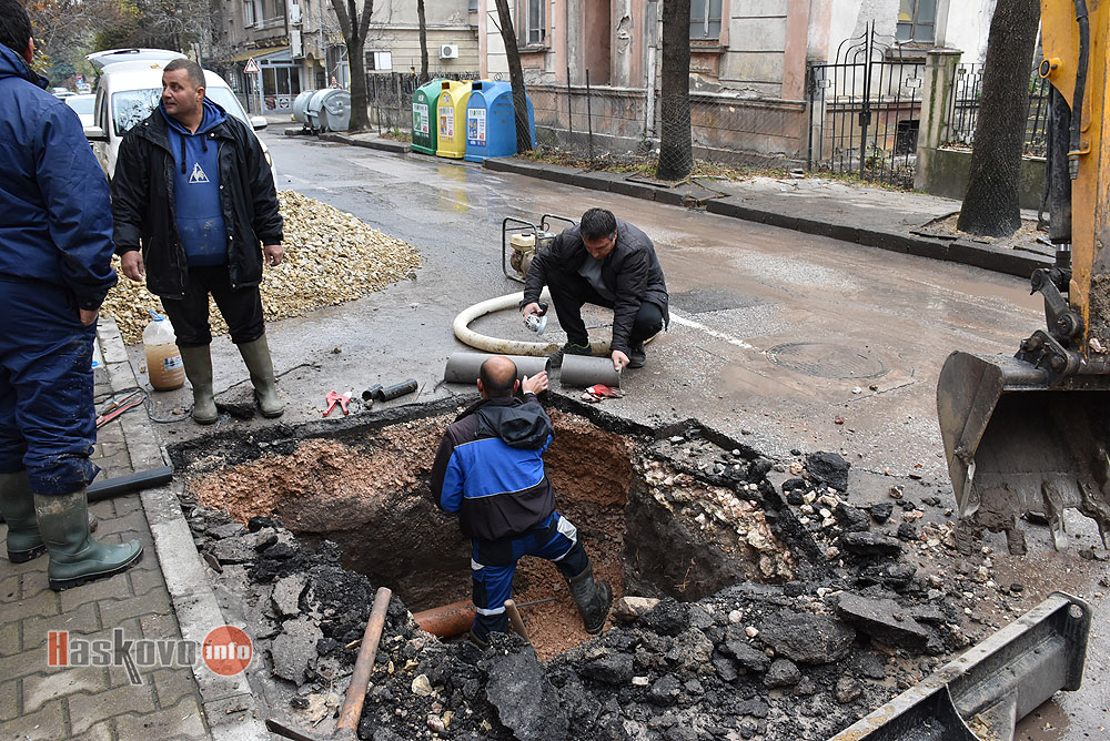 Екип на ВиК – Хасково разкопа улица „Преслав“ до съда за отстраняване на аварията, за която Haskovo.info писа.