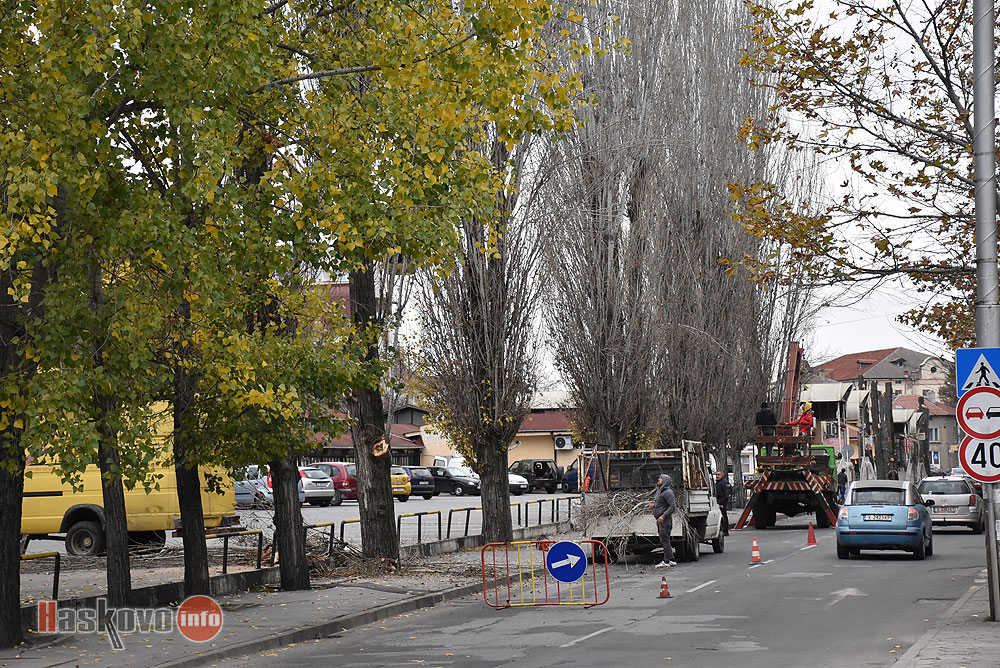 Продължава сечта на опасните тополи по булевард "България" в района на Младежкия център в Хасково.