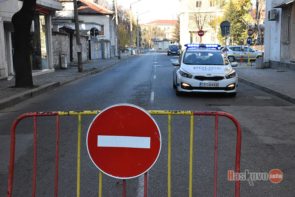 Полиция затвори хасковската улица „Драгоман“ покрай спортна зала „Дружба“, където след края на изборния ден секциите ще предават бюлетините и книжата.