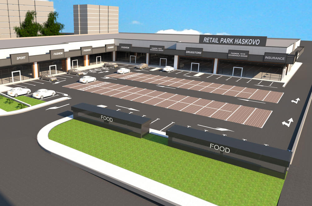 Ритейл паркът на практика ще представлява мол на открито и там ще има десетки търговски обекти и заведения. Сред тях ще бъдат още един хранителен хипермаркет, строителен хипермаркет, няколко магазина за дрехи и обувки. Общата площ на търговската зона ще бъде близо 15 декара, а търговската площ – 6,5 декара. Предвидени са три паркинга с над 400 места. В зоната ще бъдат открити 160 места.