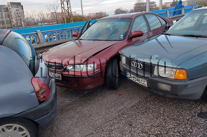 Инцидентът стана около 8 часа на детелината в квартал „Орфей“ на изхода за Димитровград. Удариха се 6 автомобила на заледен участък. Първите три коли са успели да спрат, но четвъртата не е могла и са последвали ударите между автомобилите. При произшествието няма пострадали, а само материални щети.