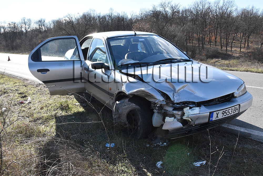 Както Haskovo.info писа, Хюндай и Форд се удариха по обяд на изхода на селото за Жълти бряг. От полицията информират, че 36-годишният шофьор на Хюндая от Хасково е предприел изпреварване на движещ се пред него камион, навлязъл е в насрещната лента и се е ударил челно във Форда, шофиран от 73-годишен хасковлия.