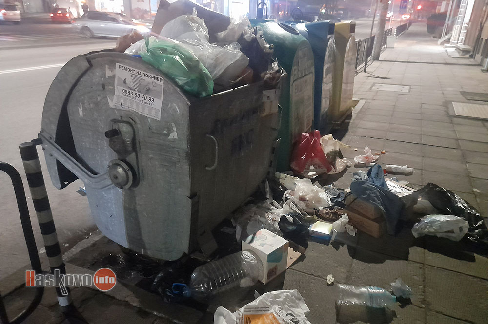 В края на годината на много места в Хасково контейнерите за отпадъци се оказаха недостатъчни за боклука от подготовката на празничната трапеза.