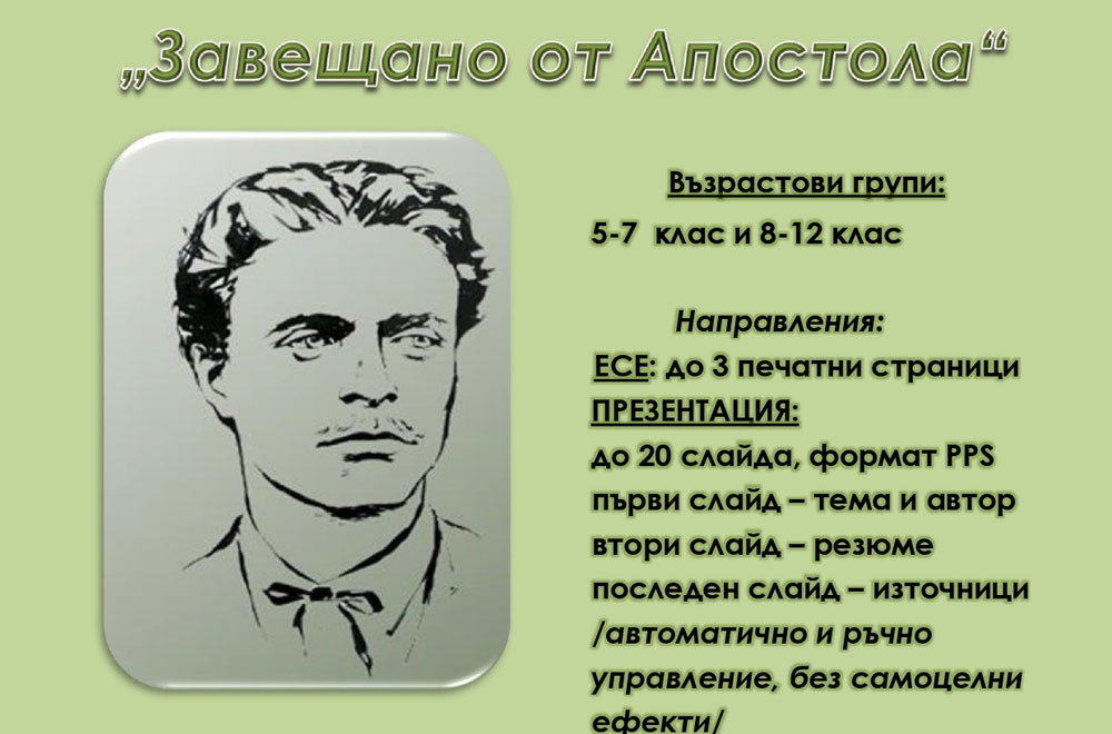 Търсят най-добрите есета и презентации в конкурса „Завещано от Апостола“