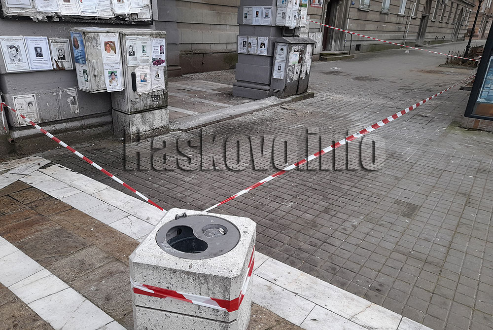 През октомври миналата година друга част на пешеходната зона в Димитровград беше отцепена. Тогава мазилка падаше от блок срещу новата автогара.