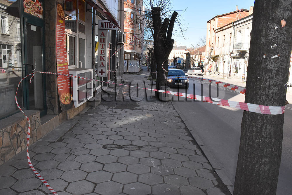 На фасадата, от която на няколко места пада мазилка, е поставена табела за продажба. Заради опасността за пешеходците тротоарът отдолу е заграден с ленти. За да преминат обаче хората слизат на пътното платно, като така рискуват да бъдат ударени от преминаващ автомобил.