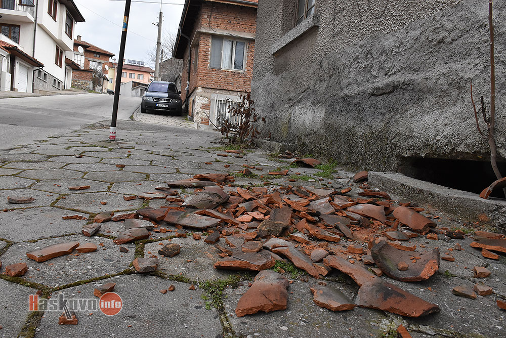 За падащи керемиди от покрива на стара къща върху тротоара на улица „Балкан“ в Хасково сигнализираха читатели на Haskovo.info.