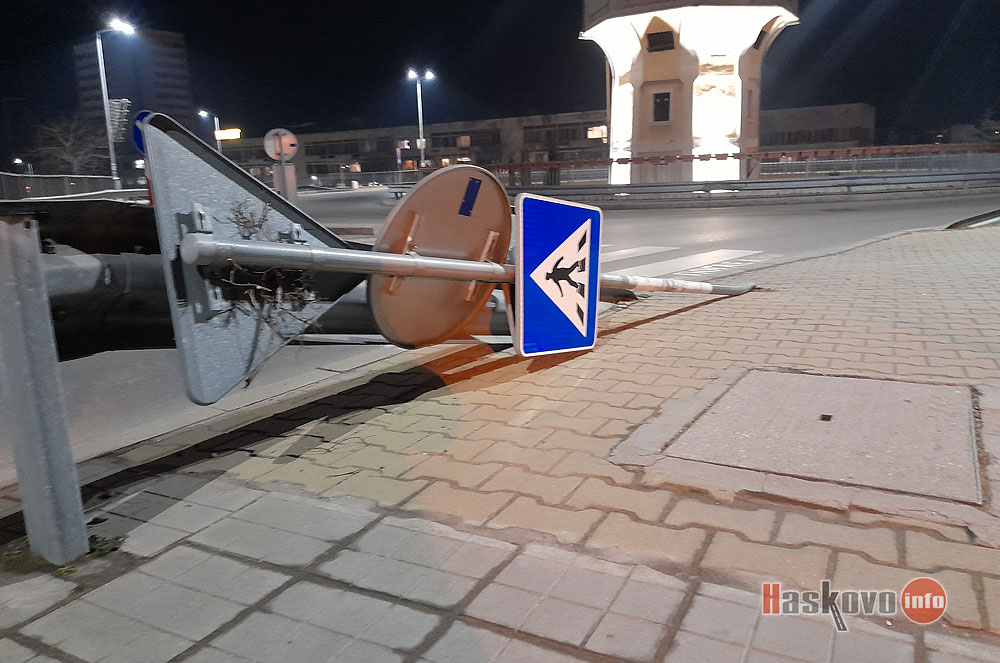 Автомобил е съборил пътни знаци до водонапорната кула в Димитровград.