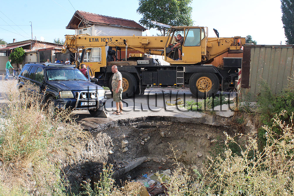 Кола падна в пропастта на липсващата част на улица „Акация“ в Хасково