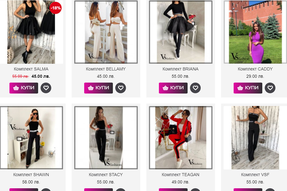Вече няма да се колебаете какво да облечете. Сред разнообразието от модели ще откриете дамски комплекти подходящи както за разходка в парка, така и за официални събития или парти вечер.