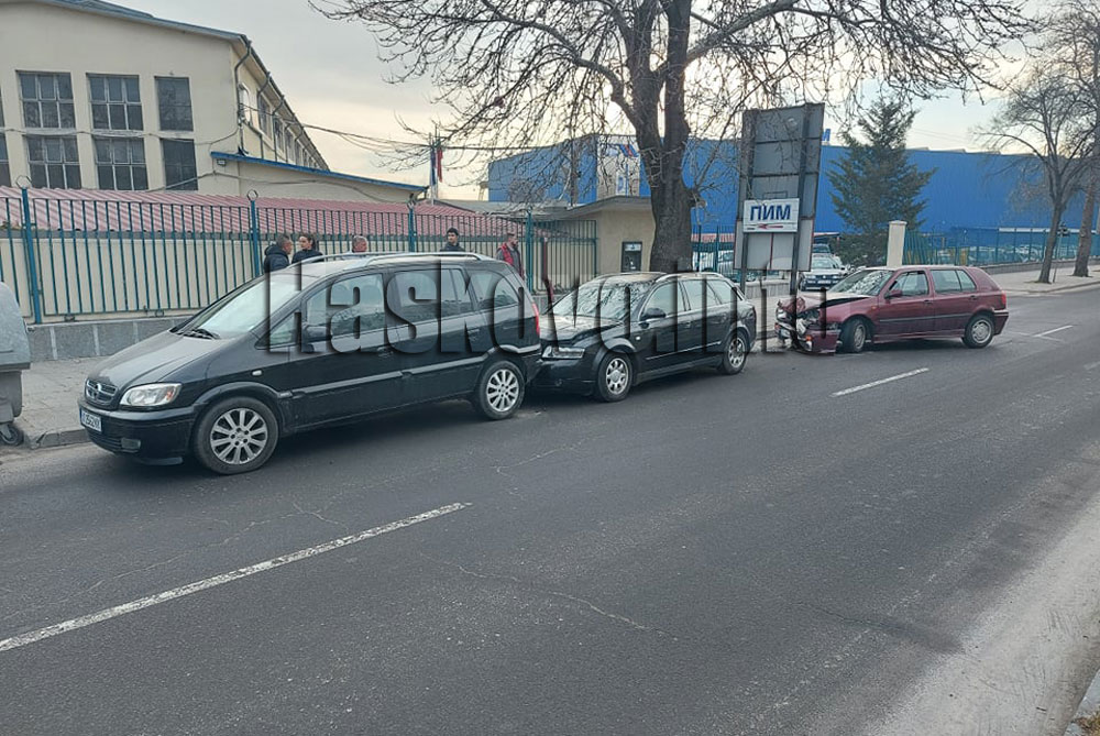 Произшествието е на булевард „Васил Левски“ в участъка между бившите Цигарена и Захарна фабрика. Ударили са се три леки автомобила. По първоначална информация катастрофата е станала при опит за престрояване на шофьора на Фолксвагена.