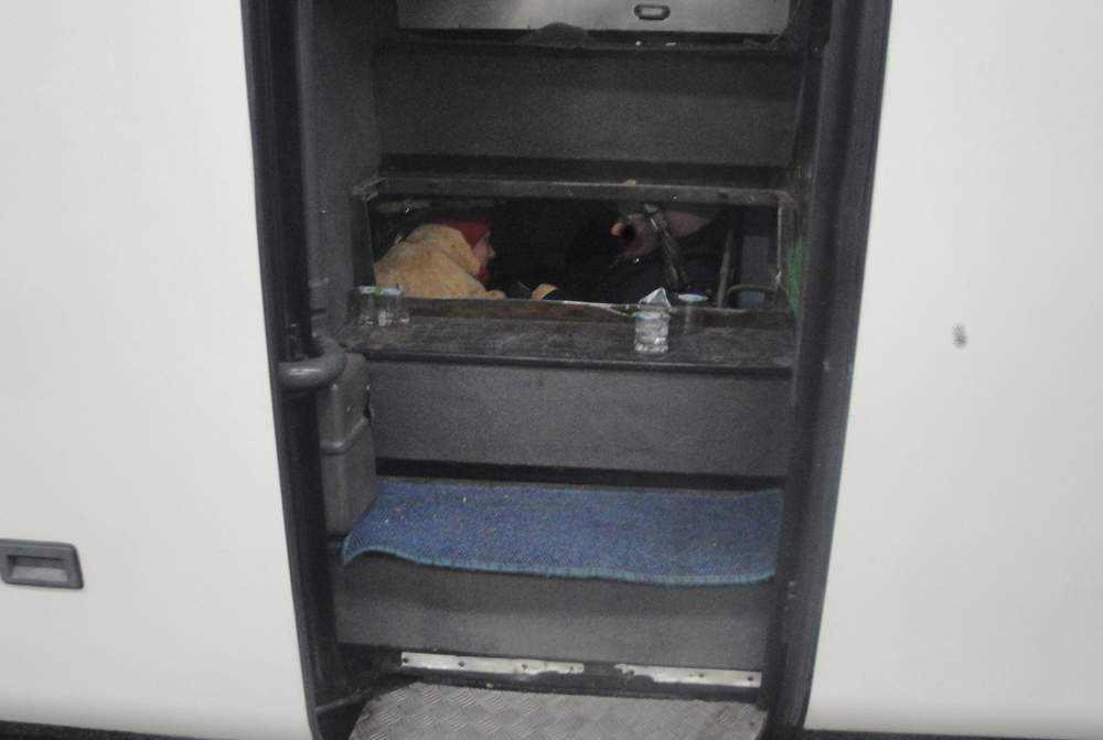 При съвместната проверка във въздуховодите на климатична инсталация били отрити 15 чужди граждани, под стълбите на задната врата в автобуса се намирали други 4, а в ниша над предната дясна гума още 6. От установените 25 чужденци имало 17 мъже, 4 жени и 4 деца на възраст от 14 до 16 г.