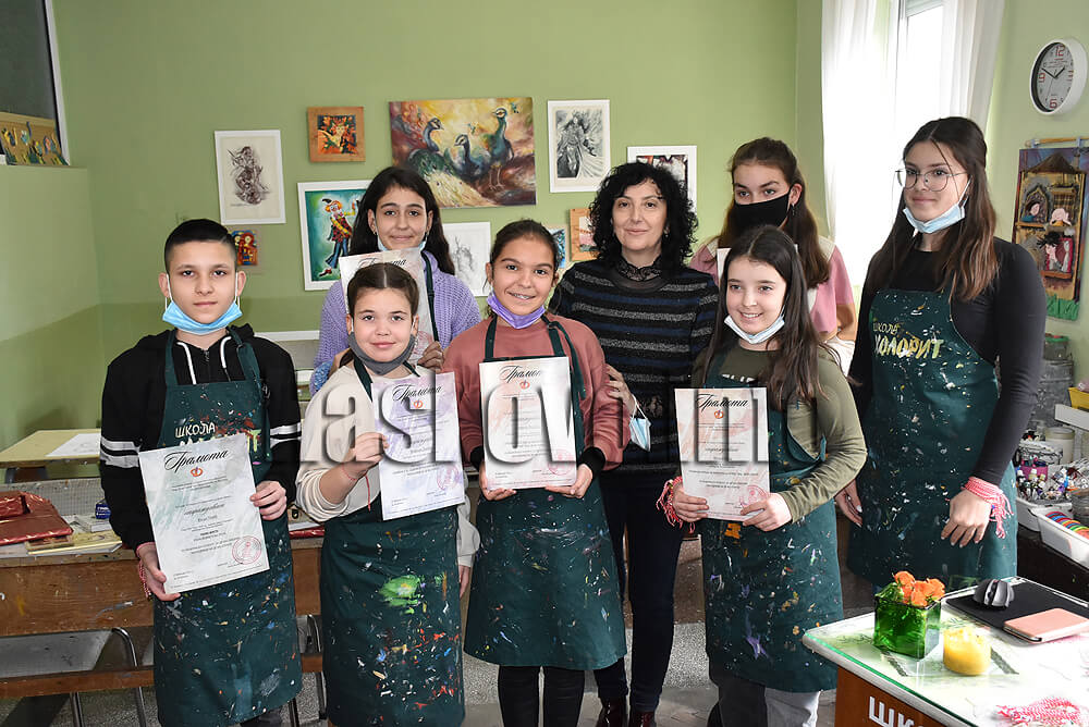 Сега младите художници от школата работят върху предстоящата голяма изложба на „Колорит“.