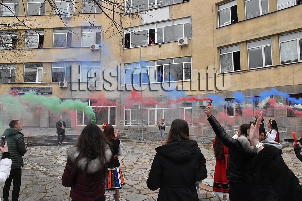 С появата на Зайков бяха пуснати димки, гръмна и шампанско. Имаше торта, плакат и всички го поканиха на бала, а развълнуваният класен прие. Последваха народни хора, на които се хванаха и други абитуриенти. Част от тях бяха в народни носии.
