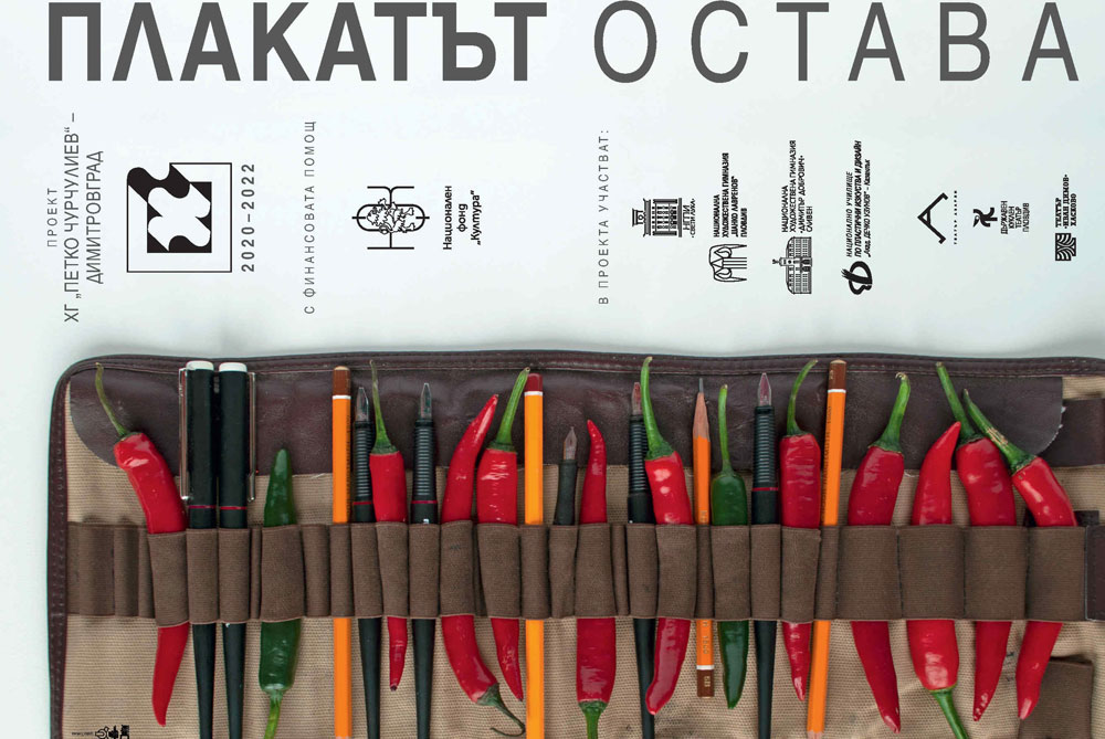 Проектът „Плакатът остава“ бе възможност за 12 гимназисти от специалността “Рекламна графика” да разработят творби по три драматургични пиеси – „Януари“ на Радичков в ДКТ „Иван Димов“ – Хасково, „Приключение с маймунка“ от Ева Кьосовска на Куклен театър – Пловдив и „АПАРТ“ на столичния театър „Азарян“ – НДК . Авторите имаха абсолютната свобода на избор на техники и визуално изразяване.