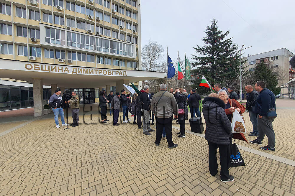 Група протестиращи се събра в ранния следобед пред сградата на общината в Димитровград.