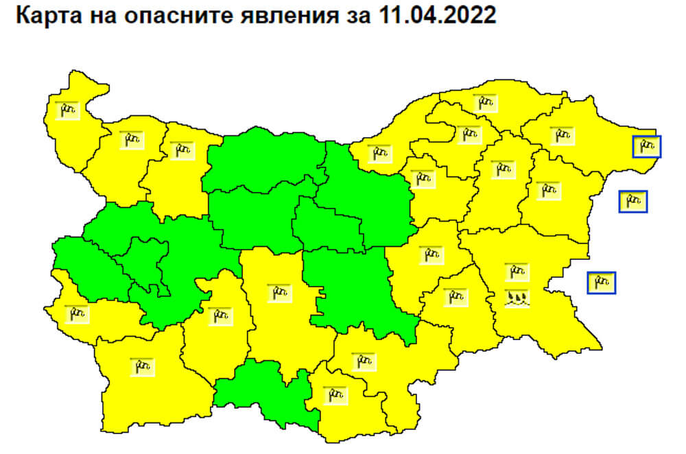 Ще духа силен вятър от север-северозапад с пориви от близо 80 км/ч. Възможни са превалявания, а максималните температури ще са около 13 градуса.