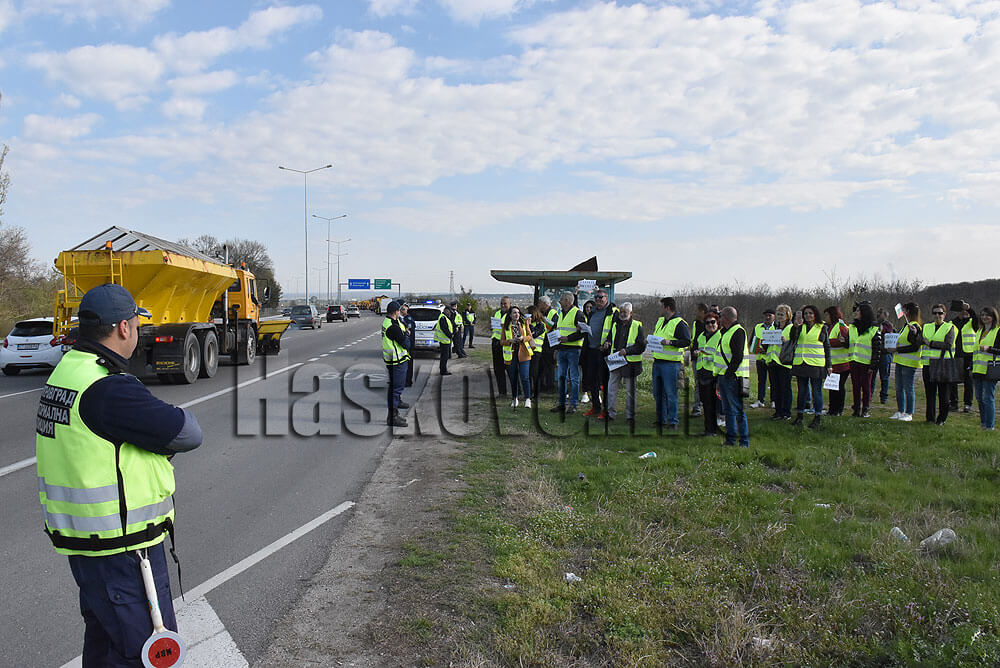Протестът е на пътно-строителната фирма АБ АД заради неизплатени 40 млн. лв. от държавата. Нейни служители протестират при разклона за димитровградското село Крепост. Сутринта те се опитаха да затворят движението в едното платно, но бяха спрени от полицаите.