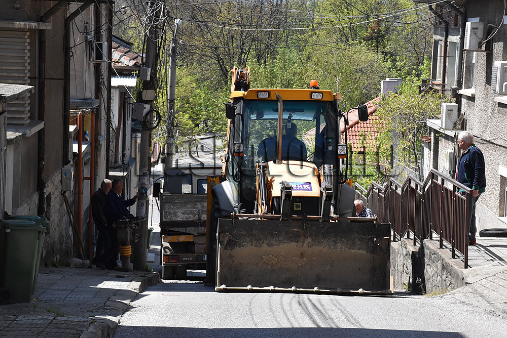 Очаква се асфалтирането да приключи по-късно в следобедните часове. Дотогава районът е затворен за движение на автомобили. Очаква се водопроводът там да бъде включен в програмата за подмяна.