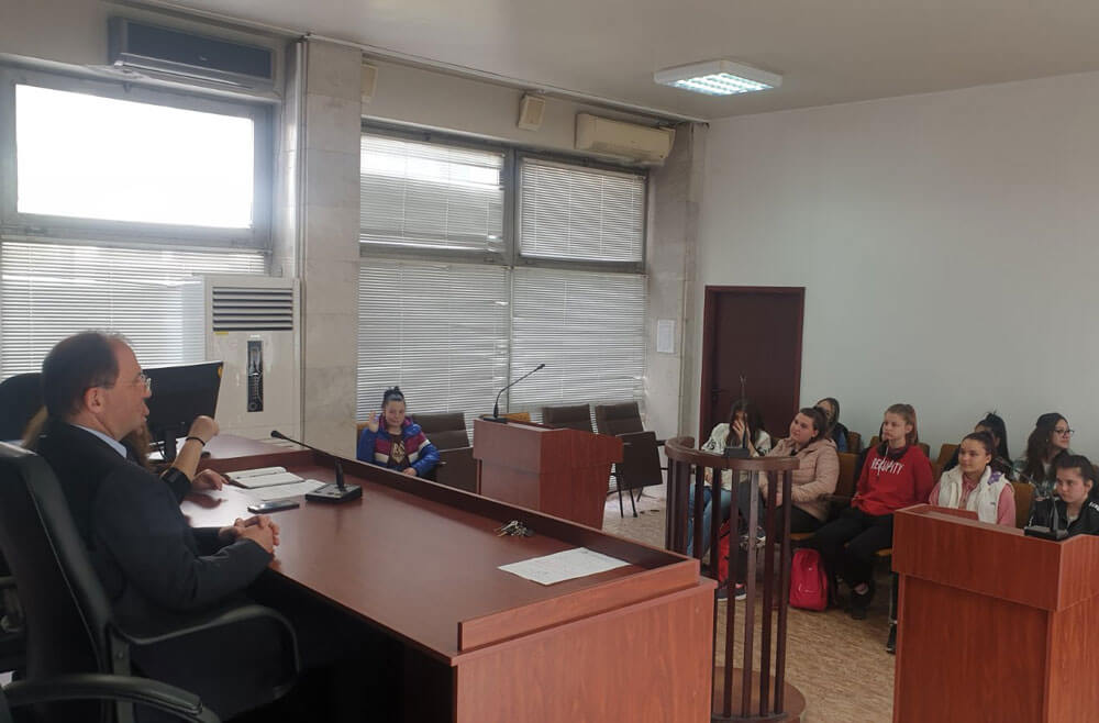 Председателят на съда Иван Маринов изнесе беседа на гимназистите. Те се запознаха с организацията и дейността на съда, както и с финансовата страна на съдопроизводството в страната.