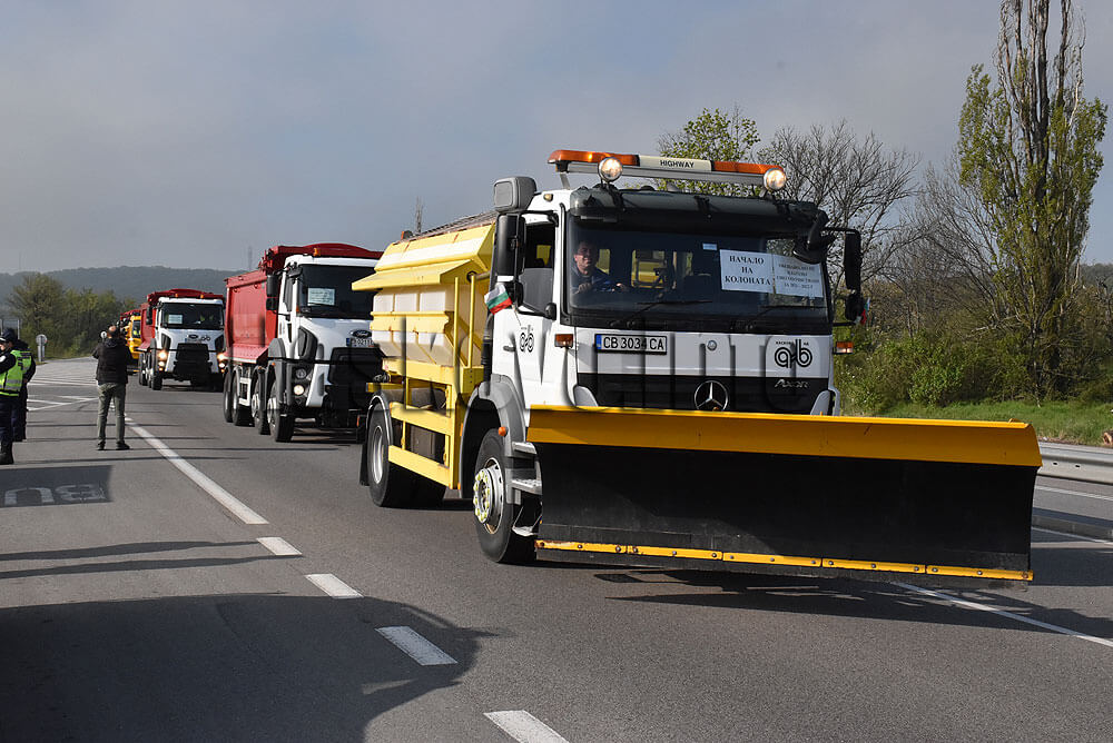 По платната в протестно автошествие се движат камиони. По предварителен план пътят Хасково – Димитровград и автомагистрала „Марица“ ще бъдат затворени за кратко в 11 часа.