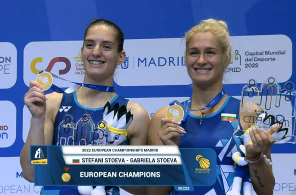 Габриела и Стефани Стоеви спечелиха титлата на двойки жени на Европейското първенство по бадминтон в испанската столица Мадрид, съобщават от федерацията.