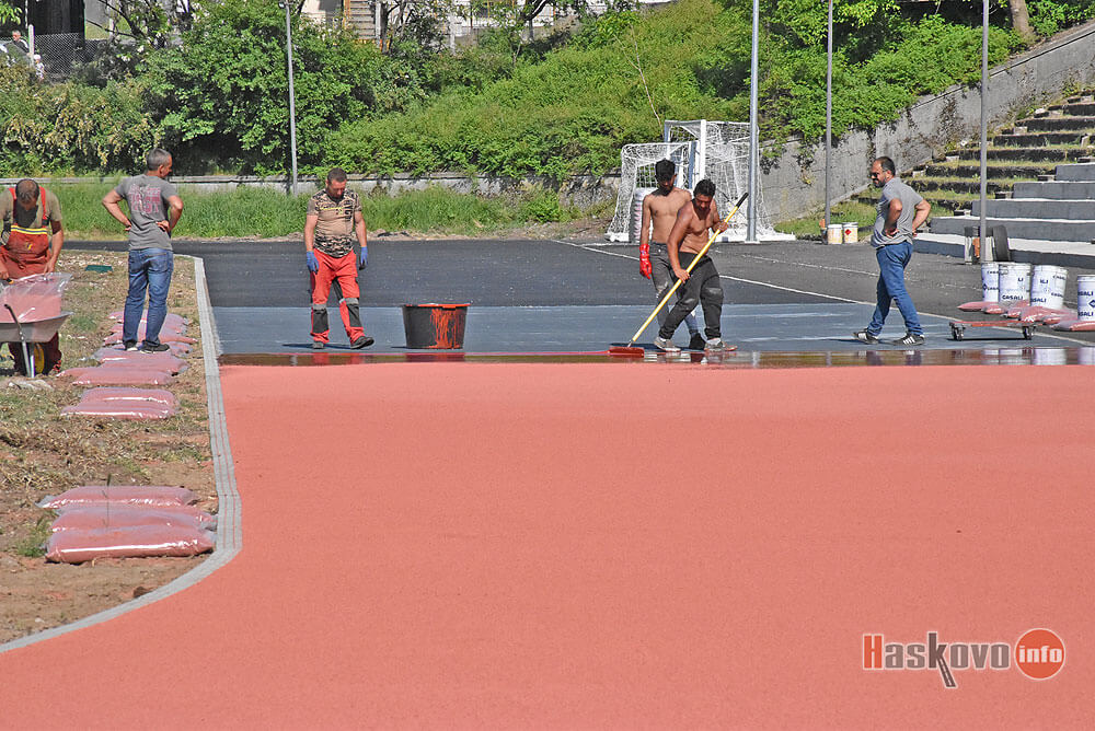 Полага се последният слой на лекоатлетическата писта на стадион „Младост“ в Хасково. Очаква се работата да приключи през следващата седмица.