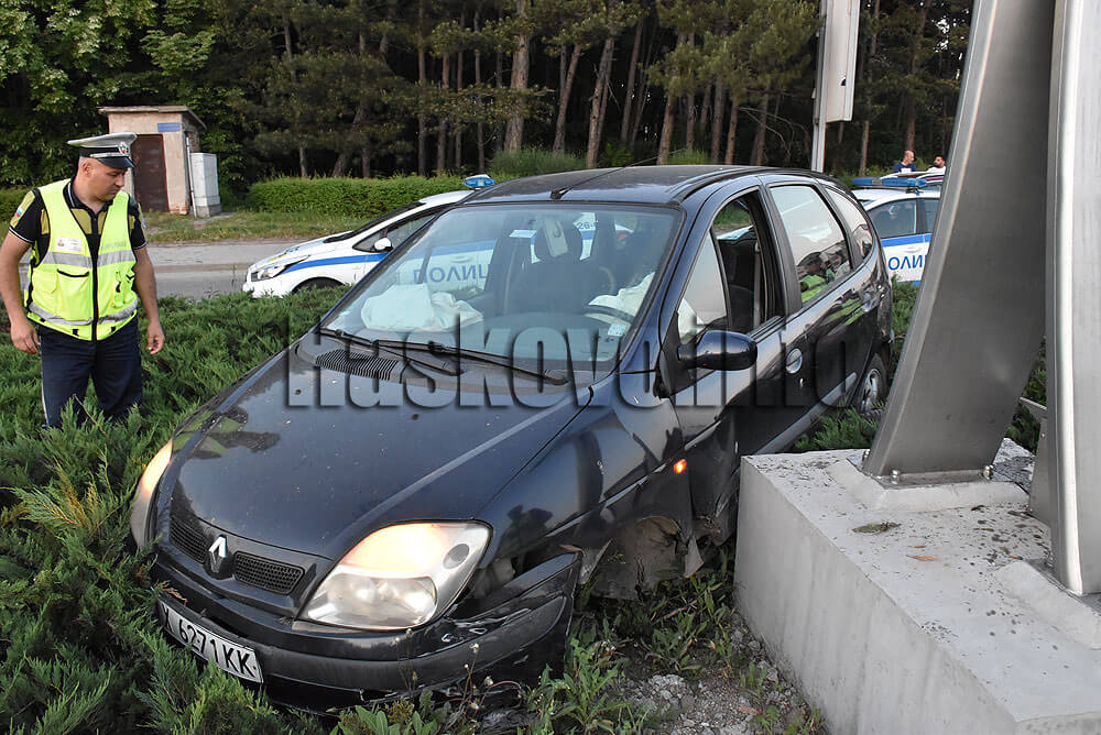 Форд с немска регистрация, шофиран от българи, се е опитал да направи ляв завой на кръговото от дясната лента и е ударил намиращият се до него автомобил Рено. След сблъсъка последната кола е навлязла в съседна градинка, като от удара в постамент е изхвърчало лявото й предно колело.