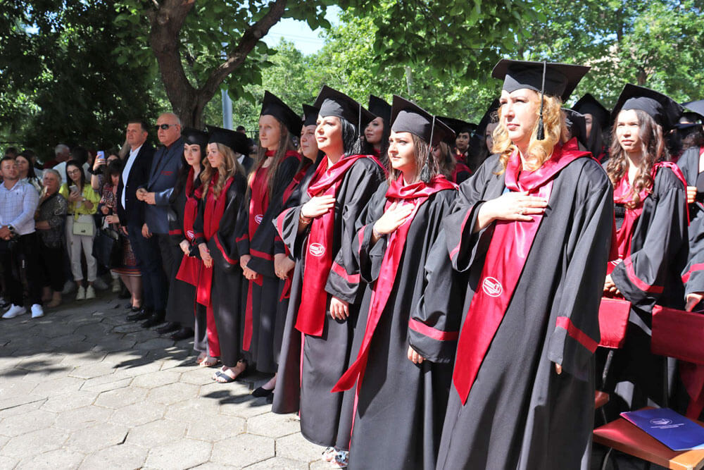 Завършващите бяха поздравени от кмета Станислав Дечев и ръководството на университета.