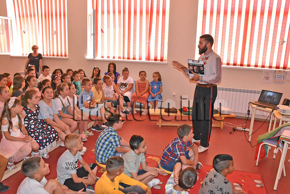 Урокът беше посветен на 24 май и 2 юни – Денят на Христо Ботев и загиналите за свободата и независимостта на България. С филмови откъси, игри, песни и стихотворения в рамките на един учебен час Красимиров въвлича децата във времето на Паисий, Ботев и Левски.