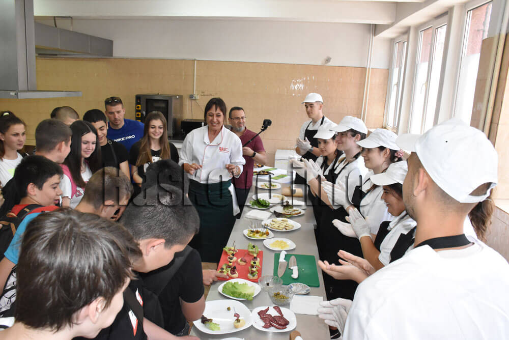Сладкарите показаха как се работи с шоколад, от кетъринга направиха вкусни и здравословни хапки, имаше и сервиране на коктейли. Учениците рисуваха на графични таблети. Гимназистите показаха изработени от тях на 3D принтер чаши и тениски с лого, визитки.