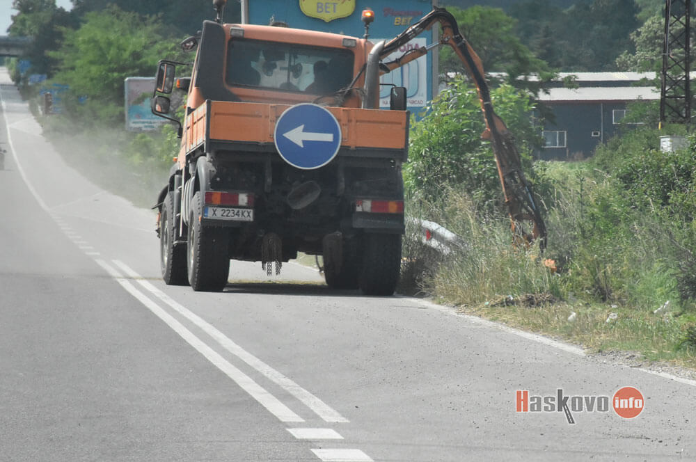 Със специализирана техника се почистват канавките на пътя Хасково - Димитровград.