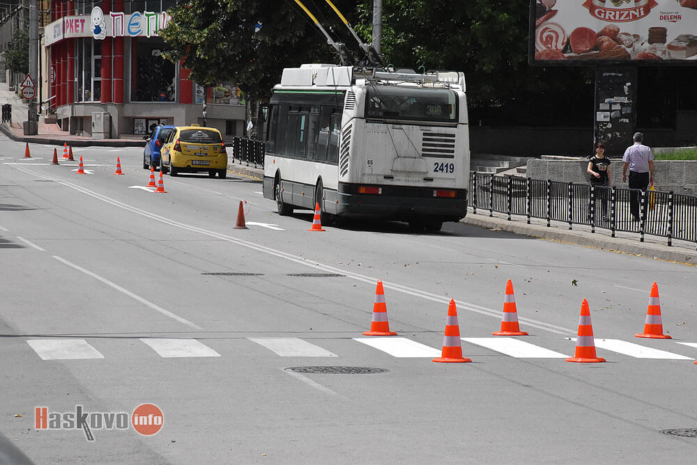 Освежават маркировката по хасковския булевард "Съединение" в района на ДНА.