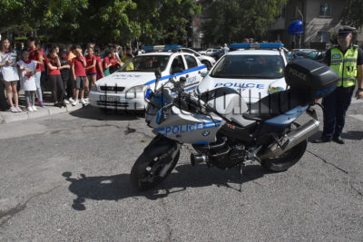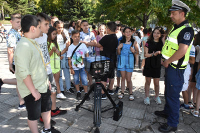 Ученици от СУ „Васил Левски“ имаха възможност да разгледат отблизо полицейски автомобили, мотоциклет и камера.