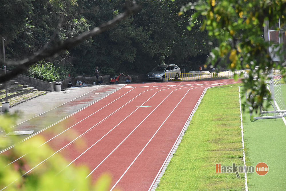 Разчертават коридорите на лекоатлетическата писта на стадион "Младост" в Хасково.