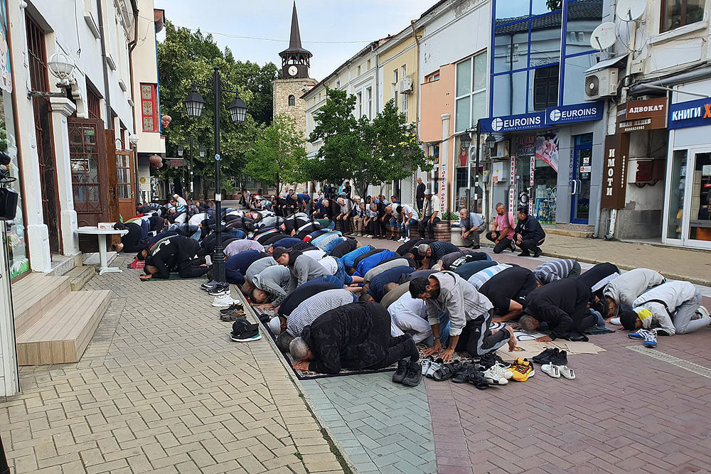 През последните две години заради пандемията молитвите за празника бяха на едно от игрищата в парк „Ямача“. По традиция на днешния ден преди да се заколи животното, най-възрастният мъж от семейството рано сутринта отива на джамия, за да се помоли. След като се върне, чете първо молитвата и тогава коли животното.